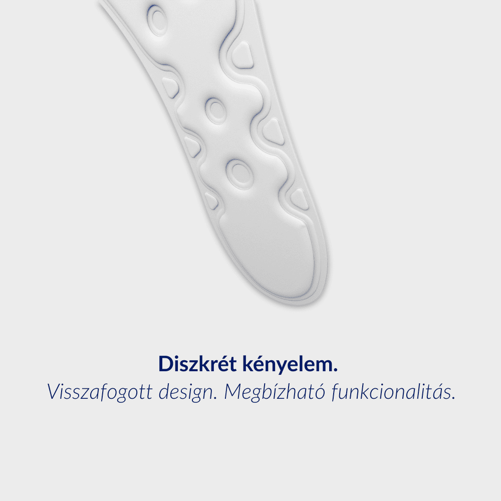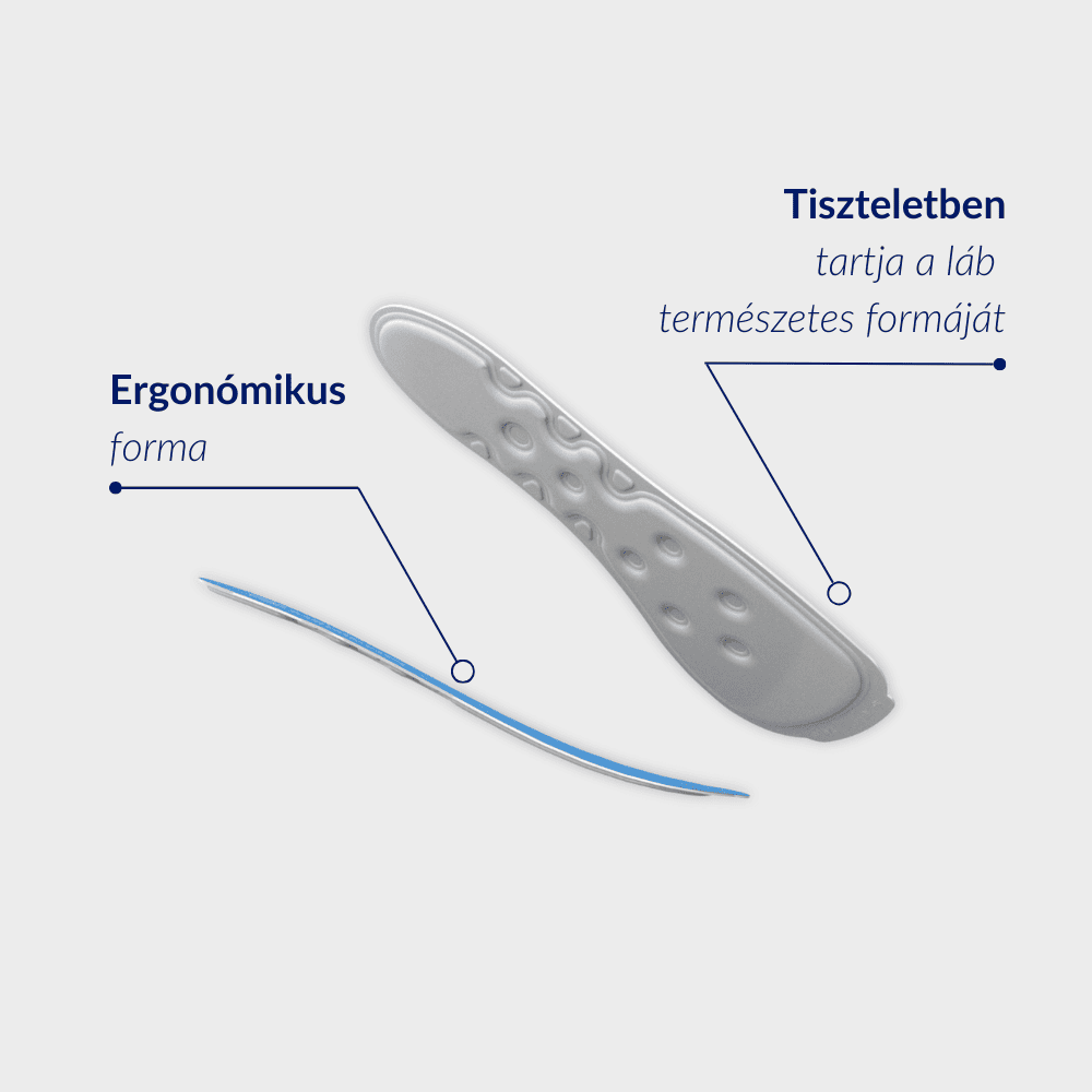 A betétek rendkívül vékonyak, alkalmasak szűk cipőkbe is (mokaszinok, balerina cipők, elegáns cipők), nyomás vagy helyhiány érzete nélkül.