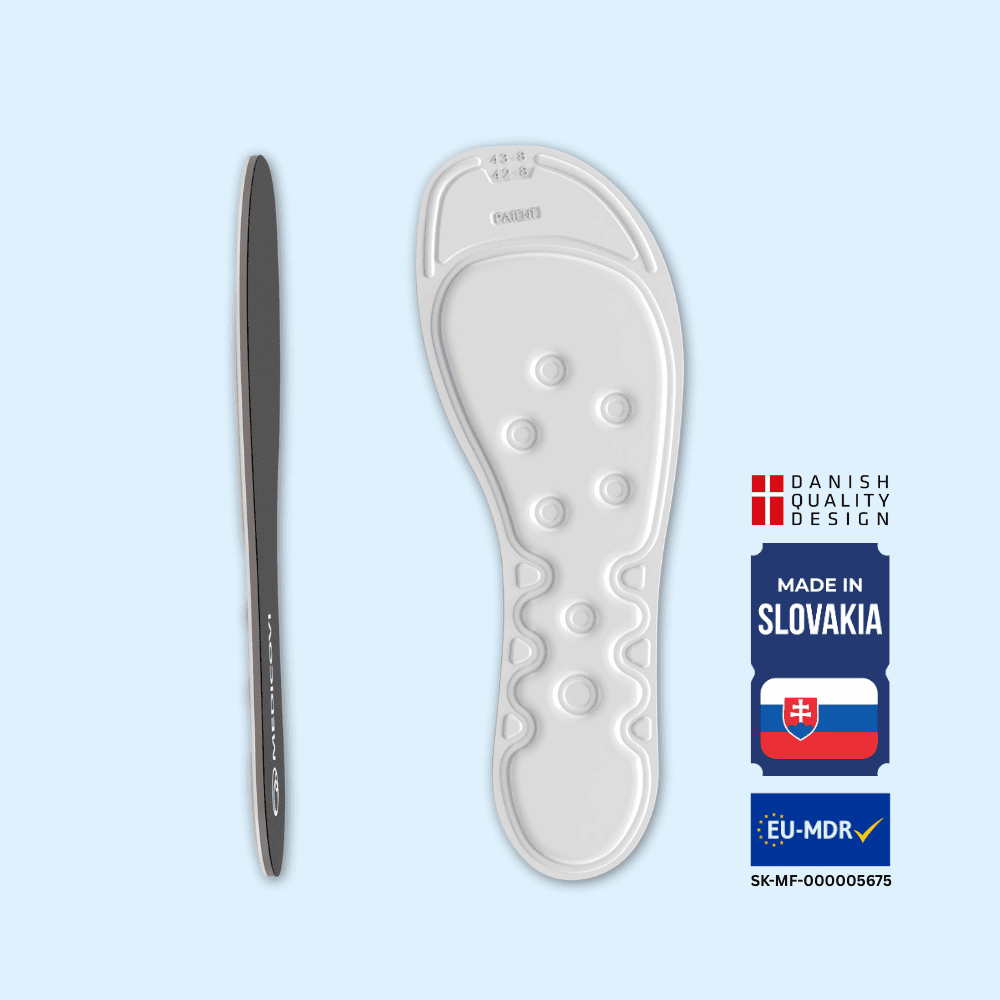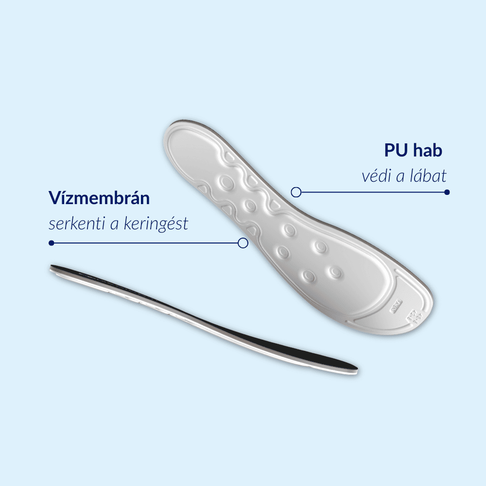 A MEDICOVI T40 betétekben lévő vízhullám aktiválja az idegvégződéseket és támogatja a véráramlást. Több energiát ad a talpaknak, javítja az egyensúlyt és csökkenti az elesés kockázatát – ideális neuropátia vagy koordinációs problémák esetén.